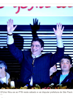 O presidente da OAB de São Paulo, Luiz Flávio Borges D’Urso, filiou-se ao PTB para concorrer à Prefeitura da capital neste sábado (6/8), em ato solene que reuniu mais de 3 mil pessoas. "Entre disputar a presidência do Conselho Federal e desenvolver um trabalho pela cidade de São Paulo, resolvi investir nessa opção. Formaremos um grupo que pode trazer uma visão de cidadania para o serviço público", disse no evento.