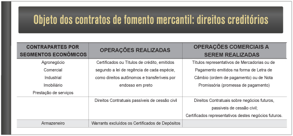 Objeto dos contratos de fomento mercantil: direitos creditórios