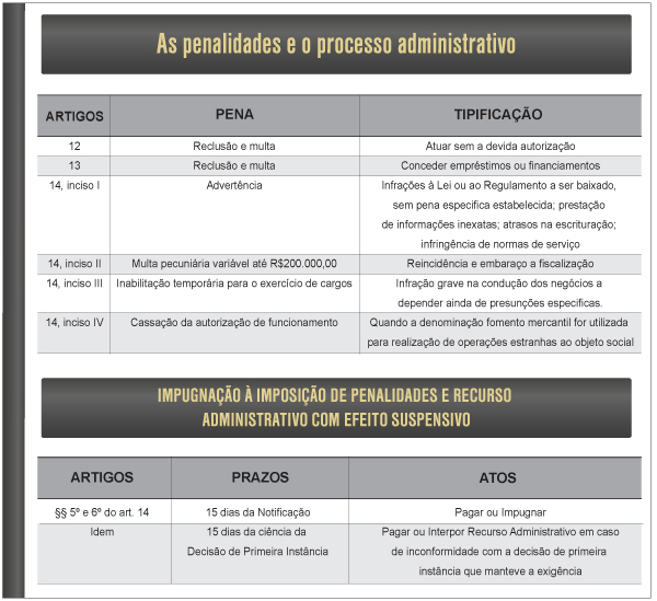 Caberá ao Poder Executivo indicar determinado órgão de sua estrutura administrativa para autorizar a abertura de sociedades de fomento mercantil, bem como atuar na supervisão das atividades e na aplicação de penalidades (artigo 11). Esta mitigação do livre exercício de atividade econômica está amparada no parágrafo único do artigo 170 da Constituição Federal. Tudo leva a crer que essas funções afetas ao Poder Executivo serão levadas a efeito de maneira similar ao que ocorre hoje com a supervisão bancária e a supervisão do mercado de capitais. Decorre daí que muitas informações serão prestadas de forma contínua ao órgão supervisor — demonstrações financeiras, relatórios contábeis analíticos, atos societários e outros —, o que por sua vez implicará significativa mudança na gestão das empresas e nos investimentos na área contábil.