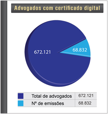 Paulo Cristóvão Silva Filho, juiz auxiliar do Conselho Nacional de Justiça, entretanto, lembra que existem outras entidades certificadoras no país. Sendo assim, ele afirma que o Brasil tem entre 200 mil e 250 mil advogados ativos, segundo a OAB. Desses, cerca de 35 mil têm certificações digitais, o que dá em torno de 20% — ainda baixo, segundo ele. Entre as entidades que registram certificações, estão Serpro, Caixa Econômica Federal e a Associação dos Advogados de São Paulo (Aasp).