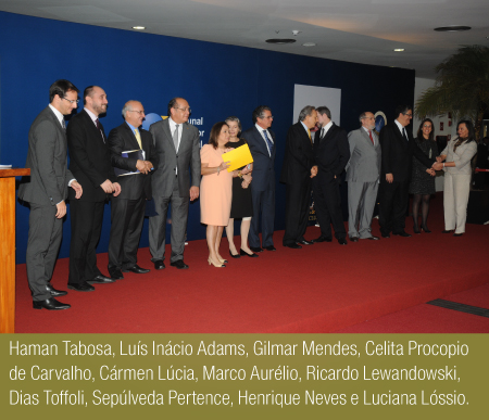O lançamento do Anuário da Justiça Brasil 2013 foi marcado pela presença de autoridades e da cúpula do Judiciário. A cerimônia aconteceu na quarta-feira (17/4) na sede do Tribunal Superior Eleitoral, em Brasília, e reuniu cerca de 300 pessoas. Entre os presentes estavam ministros do TSE, do Supremo Tribunal Federal, do Superior Tribunal de Justiça e representantes da advocacia.