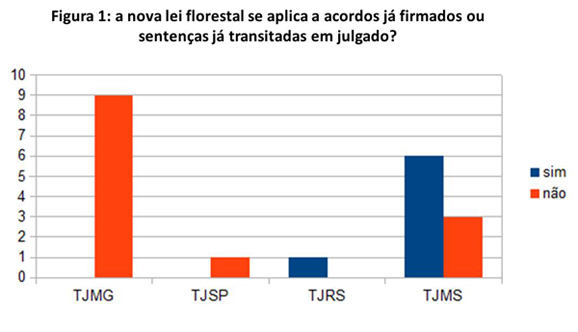 Esse entendimento, no entanto, não é unânime nem mesmo dentro do TJMS. A 1ª Câmara Cível, em casos mais recentes, proferiu decisões em sentido diametralmente oposto. Em todos os casos o órgão ambiental estadual, IMASUL, pleiteava a rescisão de TACs assinados com o Ministério Público, no qual o órgão assumia a responsabilidade de implementar a legislação florestal vigente à época. Citando a jurisprudência do STJ, o Tribunal decidiu que não podem ser aplicadas as normas do novo Código Florestal para modificar TAC celebrando anteriormente à sua vigência.