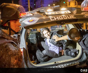 Os advogados foram detidos e isolados do grupo de manifestantes após pedirem a identificação dos policiais responsáveis pela condução da operação policial. Segundo o advogado Roberto Delmanto Jr., que representou os advogados Daniel Biral (foto) e Silvia Daskal pela Ordem dos Advogados do Brasil de São Paulo, o inquérito é “surreal”.