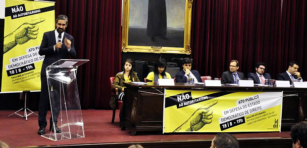 Cerca de 200 pessoas, entre acadêmicos, advogados, juristas, defensores públicos, estudantes e representantes de entidades de classe se reuniram na noite dessa terça-feira (18/7) na Sala dos Estudantes da Faculdade de Direito da Universidade de São Paulo no ato público “Não ao Autoritarismo – Em Defesa do Estado Democrático de Direito”. Organizado pelo Instituto de Defesa do Direito de Defesa (IDDD), o evento demonstrou a indignação dos participantes contra o avanço do autoritarismo e o desrespeito a direitos e garantias fundamentais.