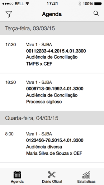Em outras palavras, os usuários do aplicativo, selecionando qual a vara que desejam consultar a pauta de audiências, poderão fazê-lo sem que seja necessário telefonar para a unidade judiciária em que as mesmas serão realizadas, mesmo porque dados como nomes das partes, tipo da audiência e horário estarão disponíveis.