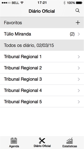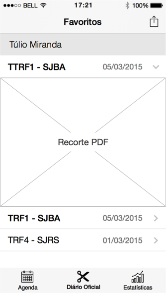 Também haverá uma funcionalidade no aplicativo alertando assim que disponível existir publicação em seu nome dentre os diários oficiais dos cinco tribunais regionais federais do país, oportunidade em que tais trechos serão enviados a sua respectiva conta de armazenamento em nuvem.