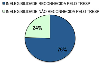 O primeiro dado relevante a se destacar é a proporção de candidaturas que seriam obstadas a partir da análise exclusiva dos julgados da corte paulista: 76% (65 casos) das decisões analisadas indicaram o reconhecimento da inelegibilidade com fundamento da Lei Complementar 135/2010, ao passo que apenas 24% (21 casos) do total do material de pesquisa levaram ao afastamento da inelegibilidade arguida.