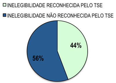 Proporção entre casos de inelegibilidade reconhecida e não reconhecida pelo TSE em toda a base da pesquisa