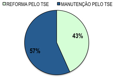 Contudo, deve-se ressaltar que, pelo fato de a competência originária ser do TRE-SP para análise dos pedidos de registros de candidaturas em Eleições Gerais, enquanto o TSE atua com poderes de reforma plena em razão da devolutividade dos recursos ordinários, torna-se relevante analisar, também, a proporção entre as decisões do TRE-SP que foram mantidas ou reformadas pelo TSE em sede recursal.