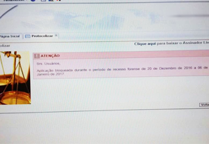 A denúncia à ConJur foi feita pelo advogado Leandro Mello Frota. Ele também publicou em seu perfil no Facebook que tentou fazer um peticionamento nesta terça-feira (20/12) — início do recesso forense definido pelo novo CPC —, mas não conseguiu.