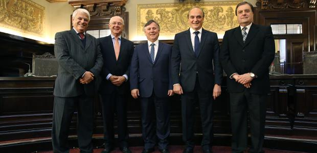 Da esquerda para a direita, o vice-presidente do TJ-SP, Ademir Benedito; o desembargador Borelli Thomaz; o desembargador Artur Cesar Beretta da Silveira; o presidente do tribunal, Paulo Dimas Mascaretti, e o desembargador João Negrini Filho.
