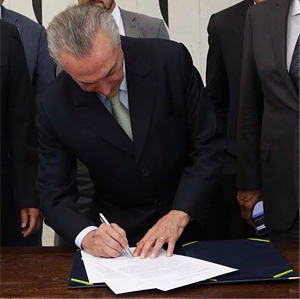Michel Temer (PMDB) se tornou oficialmente presidente interino do Brasil na manhã desta quinta-feira (12/5). Às 11h27 ele assinou a notificação sobre o afastamento da presidente Dilma Rousseff (PT) do cargo por até 180 dias após o Senado Federal ter admitido o processo de impeachment de Dilma.