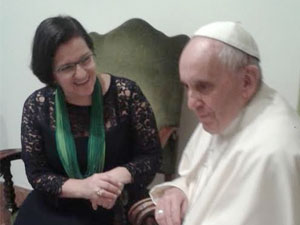 A juíza, que atua na segunda instância do TJ-SP, publicou em sua página pessoal do Facebook que levou ao papa “a preocupação dos movimentos populares com o que está acontecendo no Brasil”, junto com a atriz Letícia Sabatella. O encontro ocorreu no dia 9 de maio, quando o Senado ainda não tinha aprovado o afastamento de Dilma.