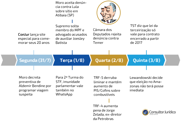 A notícia mais lida da ConJur na semana, com 62,8 mil acessos, foi sobre declarações do juiz federal Sergio Moro sobre a operação “lava jato”. Segundo reportagem publicada na Folha de S.Paulo, ele disse a jornalistas que seguiu a Constituição Federal ao divulgar conversas grampeadas entre os ex-presidentes Lula e Dilma Rousseff.