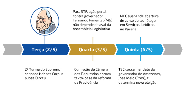 A decisão que mais movimentou o Judiciário durante a semana foi a que concedeu Habeas Corpus ao ex-ministro José Dirceu, preso em Curitiba desde 2015: o julgamento repartiu a 2ª Turma do Supremo Tribunal Federal, sinalizou tendência de acabar com longas prisões preventivas na operação “lava jato” e ainda ignorou estratégia do Ministério Público Federal, que no mesmo dia havia apresentado nova denúncia contra Dirceu — reconhecendo “precipitação com o objetivo de trazer à tona informações”.