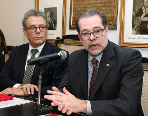 Dias Toffoli ao lado do presidente do IAB, Técio Lins e Silva, durante o evento.