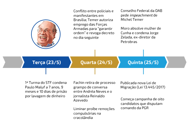 Outra surpresa da semana foi a revelação de que a operação “lava jato” violou o sigilo de fonte ao divulgar conversa entre o jornalista Reinaldo Azevedo e Andrea Neves, irmã do senador afastado Aécio Neves (PSDB-MG). Na ligação telefônica, nada de relevante ao processo é dito; nem a Polícia Federal viu indícios de crimes nas conversas. O caso foi revelado pelo site BuzzFeed, e ninguém assumiu o erro: tanto a Procuradoria-Geral da República como a PF negaram que tenham anexado o diálogo. Após a enxurrada de críticas, Fachin retirou as falas dos autos.