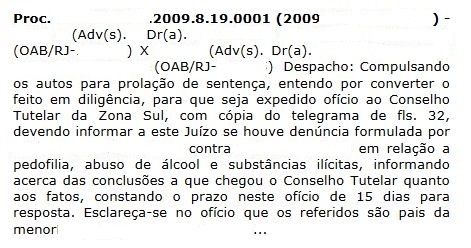 Processo em trâmite no RJ. Omitimos os nomes completos, inclusive da menor ao final.