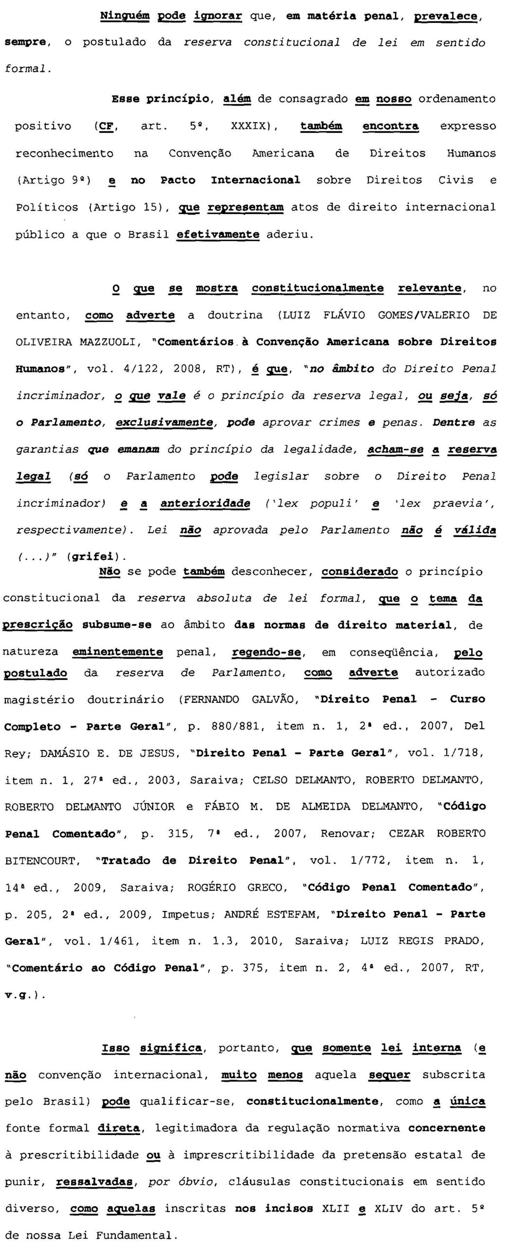 A própria Convenção Americana de Direitos Humanos (CADH) estabelece no art. 9º o princípio da legalidade e a retroatividade benéfica, excluindo de modo claro a incidência de tratamento penal mais gravoso do que o vigente à época dos fatos [Ninguém poderá ser condenado por atos ou omissões que, no momento em que foram cometidos, não constituam delito, de acordo com o direito aplicável. Tampouco poder-se-á impor pena mais grave do que a aplicável no momento da ocorrência do delito. Se, depois de perpetrado o delito, a lei estipular a imposição de pena mais leve, o delinquente deverá dela beneficiar-se].