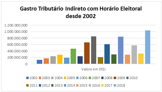 Esse gasto tributário indireto tem valor relevante, e com a proibição de doações em dinheiro para financiamento eleitoral por pessoas jurídicas, por meio do acórdão proferido pelo Supremo Tribunal Federal nos autos da Ação Direta de Inconstitucionalidade  4.650 em setembro de 2015, esse gasto tende a aumentar. Importante destacar que o aumento exponencial do gasto com o horário eleitoral obrigatório já está na previsão do Demonstrativo de Gasto Tributário da PLOA de 2018.