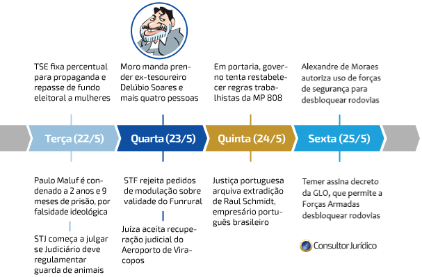 As manifestações de caminhoneiros que paralisaram rodovias e fizeram combustíveis sumir dos postos também atingiram o Poder Judiciário. Tribunais de todo o país suspenderam expedientes e prazos processuais, e uma série de liminares proibiu o bloqueio total de determinadas vias, a pedido da Advocacia-Geral da União, de concessionárias e da Prefeitura de São Paulo.