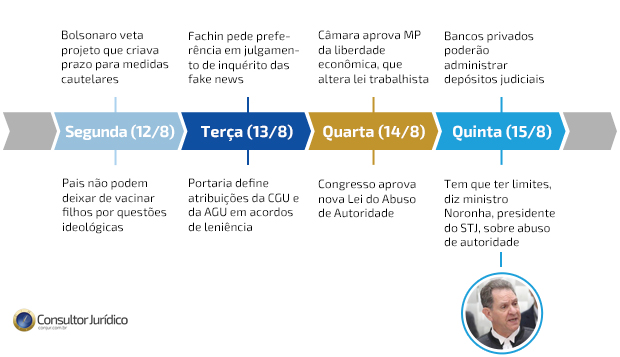 Presidente do Superior Tribunal de Justiça, o ministro João Otávio de Noronha defendeu a mudança na lei. "Aquilo vale para todas as autoridades, seja do Judiciário, seja do Executivo, seja do Legislativo. A lei é para todos. E nós também, juízes, temos que ter limites na nossa atuação, assim como tem os deputados, como tem o presidente da República, como tem os ministros do Executivo. Portanto, acredito que o que tem aí deve ser um aprimoramento da legislação", afirmou.