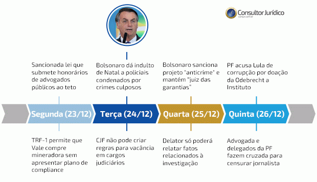 Com 28,6 mil acessos, a notícia mais lida abordou a reação do meio jurídico à criação do juiz das garantias, por meio do "pacote anticrime". A lei foi sancionada pelo presidente Jair Bolsonaro nesta quarta-feira (25/12).