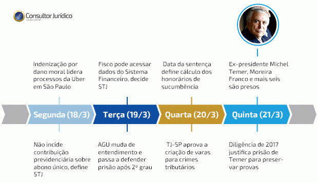 O ex-presidente Michel Temer e mais sete investigados foram presos preventivamente nesta quinta-feira (21/3). A determinação partiu do juiz Marcelo Bretas, da 7ª Vara Federal Criminal do Rio de Janeiro, por entender que os crimes pelos quais eles são acusados são graves. Segundo o juiz, por terem ocupado altos cargos, Temer e o ex-ministro Moreira Franco, se soltos, poderiam colocar em risco a ordem pública. Com base em uma diligência de maio de 2017, Bretas ainda argumenta que os acusados poderiam destruir provas e esconder valores.