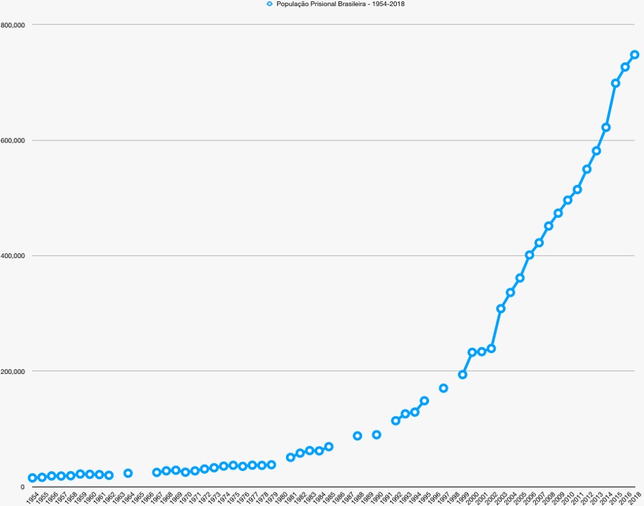 Figura 1 – População Prisional Brasileira 1954-2018. Fonte IBGE e INFOPEN