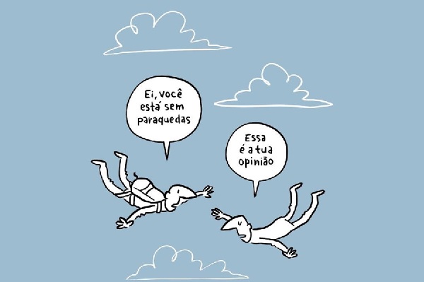 Assentado em um paradigma já superado, sem saber que está, o direito brasileiro é concebido sob uma racionalidade instrumental. Direito é só um fato social que serve para alguma coisa. E isso depende do poder. E, afinal — eis o meme vencedor — cada um tem a sua opinião… Mais ou menos como na charge abaixo: