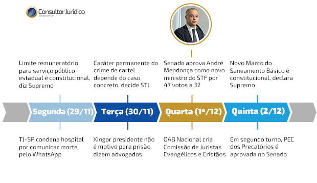 A indicação de André Mendonça para o Supremo Tribunal Federal foi aprovada por 47 votos a 32 durante a votação no plenário do Senado na última quarta-feira (1º/12). Ele irá ocupar a cadeira do ministro aposentado Marco Aurélio Mello.