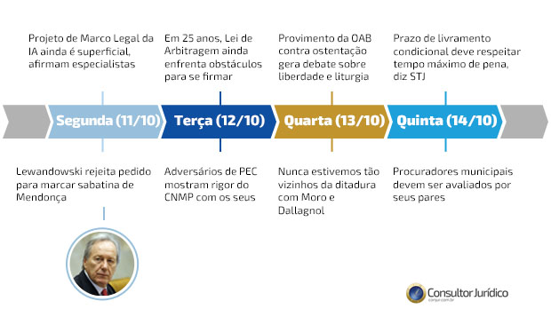 Outro destaque da semana foi a decisão do ministro Ricardo Lewandowski que negou provimento a mandado de segurança com pedido liminar impetrado pelos senadores Alessandro Vieira (Cidadania-SE) e Jorge Kajuru (Podemos-GO) contra ato do presidente Comissão de Constituição, Justiça e Cidadania do Senado, Davi Alcolumbre (DEM-AP).