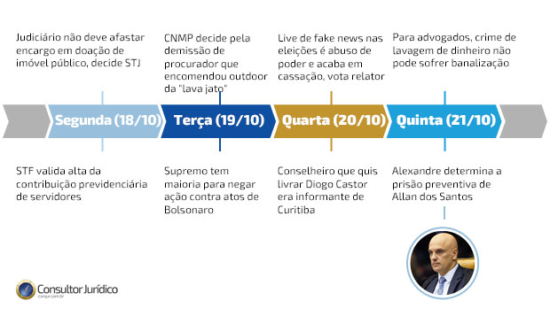 Com 70 mil leituras, o texto mais lido da semana informa decisão do Conselho Nacional do Ministério, que por seis votos a cinco, que referendou a recomendação da conselheira Fernanda Marinela de Sousa Santos — relatora de um PAD (processo administrativo disciplinar) contra o procurador Diogo Castor de Mattos — e decidiu pela demissão do integrante do MPF. O caso envolve a participação de Castor de Mattos na criação de um outdoor em homenagem ao consórcio da "lava jato" em Curitiba.