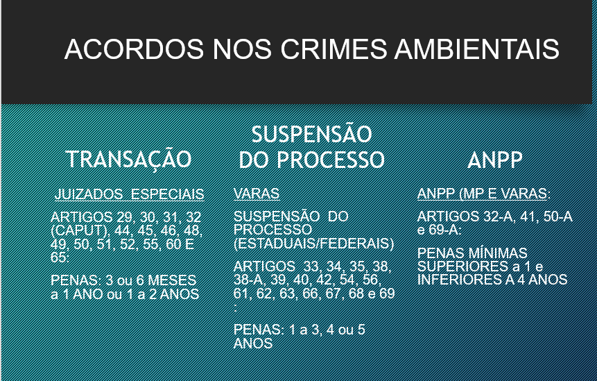 Eis aí as principais questões da negociação e do processo no âmbito criminal. Aguardemos a evolução, interpretando-se a norma de forma a proteger o meio ambiente.