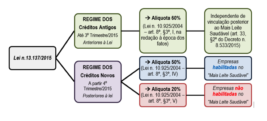 A situação mudou em 2015, quando se editaram duas normas para tratar dos créditos presumidos no setor lácteo: a Lei n° 13.137/2015 e o Decreto n° 8.533/2015.