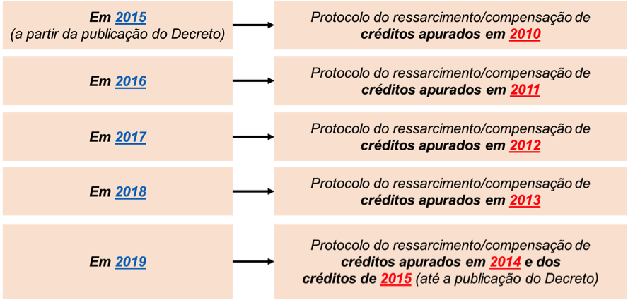 Para isso, foi feito um "cronograma" a ser seguido pelas empresas para que pudessem realizar o protocolo dos pedidos de ressarcimento ou declarações de compensação.