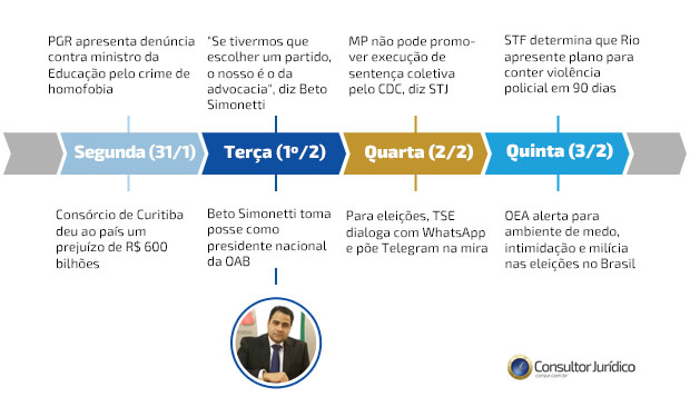O advogado José Alberto Simonetti tomou posse da presidência do Conselho Federal da OAB na última terça-feira (1º/2). Em seu primeiro discurso como presidente, o advogado reforçou a importância da união da classe e homenageou a gestão anterior pelos avanços conquistados mesmo durante a epidemia de Covid-19. Afirmou que o grande objetivo da gestão é valorizar a advocacia.