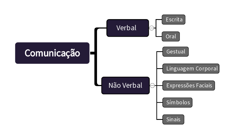 A comunicação pode ser dar nas modalidades: (a) Verbal: (i) escrita; e, (ii) oral; (b) Não Verbal: (i) gestual; (ii) linguagem corporal; (iii) expressões faciais; (iv) símbolos (balança da Justiça, faixa verde do defensor, algemas etc.); e, (v) sinais (apito, placa de trânsito etc.).