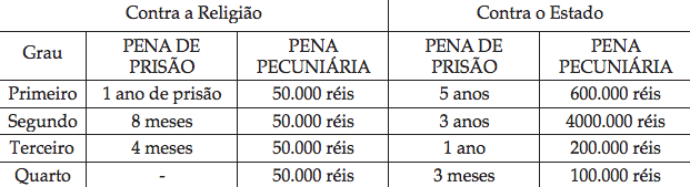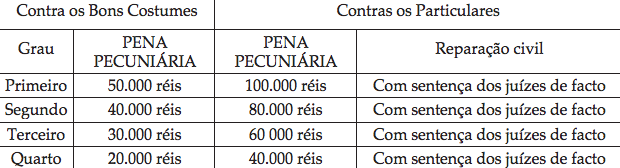 Cada crime era classificado em quatro graus de gravidade.