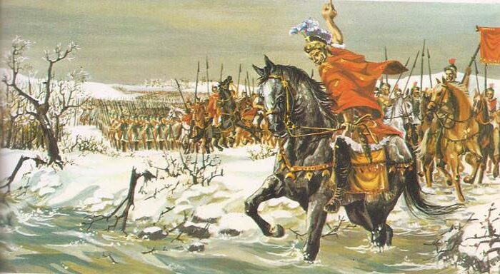 O imperador romano Júlio César, em 49 a.C., desafiou os poderes constituídos ao atravessar o rio Rubicão com a legião romana. Na ida, o ato foi considerado ilegalidade sem precedentes; na volta, Pompeu, ao interpretar o feito como clara declaração de guerra, ordenou o abandono da cidade para evitar o iminente combate. De todo modo, César concorreu para o completo fracasso, pois ali assumiu risco não calculado. A ele é atribuída a famosa frase "Alea iacta est", traduzida pelo senso comum como "A sorte está lançada". Pompeu morrera em 48 a.C. e ganhou de César a veneração deificadora por meio de um busto. César morreu em 44 a.C., exatamente abaixo da estátua de seu antigo aliado e desafeto de guerra.