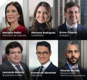 Os novos sócios são: Mariana Pollini (Mercado de Capitais); Mariana Rodrigues (Imobiliário); Bruno Crispim (Energia); Leonardo Batista (Societário e M&A); Emmanuel Abrantes (Tributário); e Ricardo Santos (Reorganização Patrimonial e Sucessória).