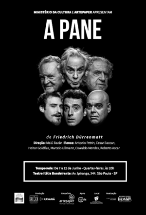 Ao chamar de A pane seu conto (depois transformado em teatro), Dürrenmat não estava só pensando na falha mecânica de um Jaguar, que leva o protagonista a uma situação inesperada. A pane também diz respeito a este nosso mundo, repleto de imperfeições e catástrofes, de falhas da Justiça, de culpas e desculpas. Dürrenmat é daqueles autores que divertem e dão o que pensar.