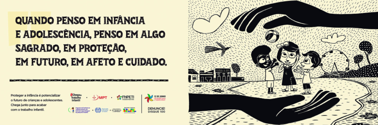 Entre essas iniciativas, neste ano de 2023, o Ministério Público do Trabalho, FNPETI, a OIT e o Programa de Combate ao Trabalho Infantil da Justiça do Trabalho e pelo Ministério do Trabalho e Emprego coordenam campanha "Proteger a infância é potencializar o futuro de crianças e adolescentes. Chega junto para acabar com o trabalho infantil", ilustrada em cordel, por meio da qual mobilizam a hastag "VamosAcabarComOTrabalhoInfantil"[12].