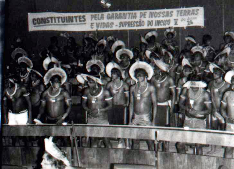 Um ano antes disso, Ailton Krenak, líder indígena, ambientalista, filósofo, poeta e escritor brasileiro, havia proferido o comovente discurso, na tribuna da Assembleia Constituinte, em que se vestiu de terno branco e pintou o seu rosto com jenipapo para protestar a favor dos direitos indígenas e contra a supressão dos mesmos, que não foram acolhidos no texto constitucional.