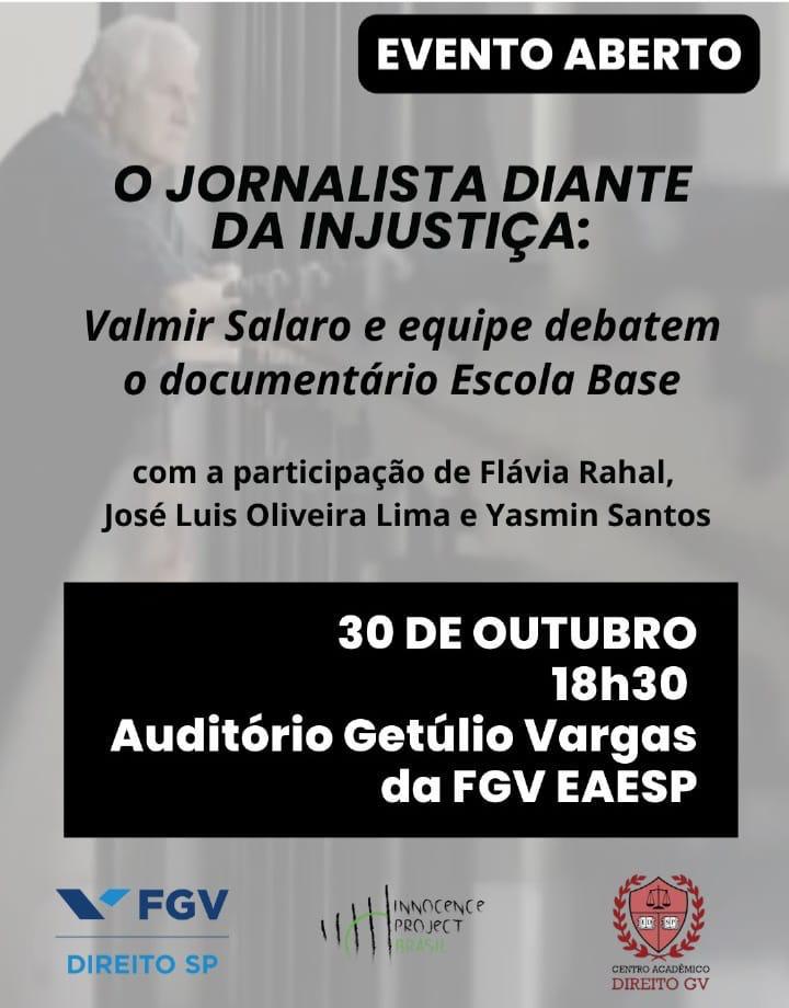 A FGV Direito SP, o Innocence Project Brasil e o Centro Acadêmico Direito GV promovem um evento que irá debater o documentário "Escola Base: Um repórter enfrenta o passado".