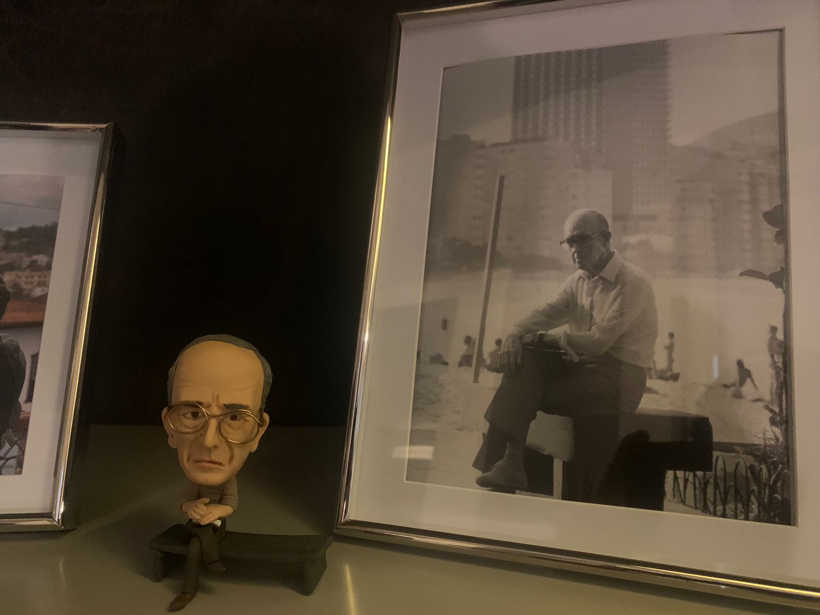 Também pediu ao fotógrafo Rogério Reis cópias de fotos feitas durante uma entrevista dada pelo escritor ao Jornal do Brasil em 1982. Ganhou de brinde a foto em que Drummond aparece sentado em um banco, de frente para a calçada e de costas para o mar. A imagem inspirou a icônica estátua do poeta instalada no calçadão de Copacabana.