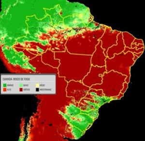 Risco de fogo para o dia 29/08/2024 (Fonte: Inpe, 2024)