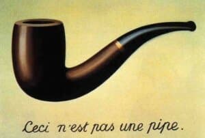 A pintura de um cachimbo não é um cachimbo, mas sim uma pintura — de um cachimbo. Não é uma bicicleta. Portanto, podemos falar sobre o cachimbo de vários modos, inclusive apenas no seu plano simbólico. Ou só de sua pintura. Mas, continuará sendo uma pintura de um cachimbo. Esse é o seu “mínimo é”. Ao menos em uma leitura não-relativista.