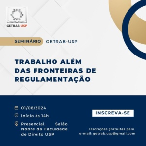 O Grupo de Estudos de Direito Contemporâneo do Trabalho e da Seguridade Social, da Universidade de São Paulo (Getrab-USP), promove, no dia 1º de agosto, o evento “Trabalho além das fronteiras de regulamentação”.