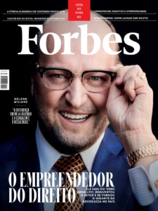 A edição de julho da revista Forbes Brasil, destacando a lista “50 over 50”, traz na capa o advogado Nelson Wilians. A reportagem detalha a trajetória de Wilians, desde a infância humilde em um sítio no interior do Paraná até a fundação do maior escritório de advocacia da América Latina.